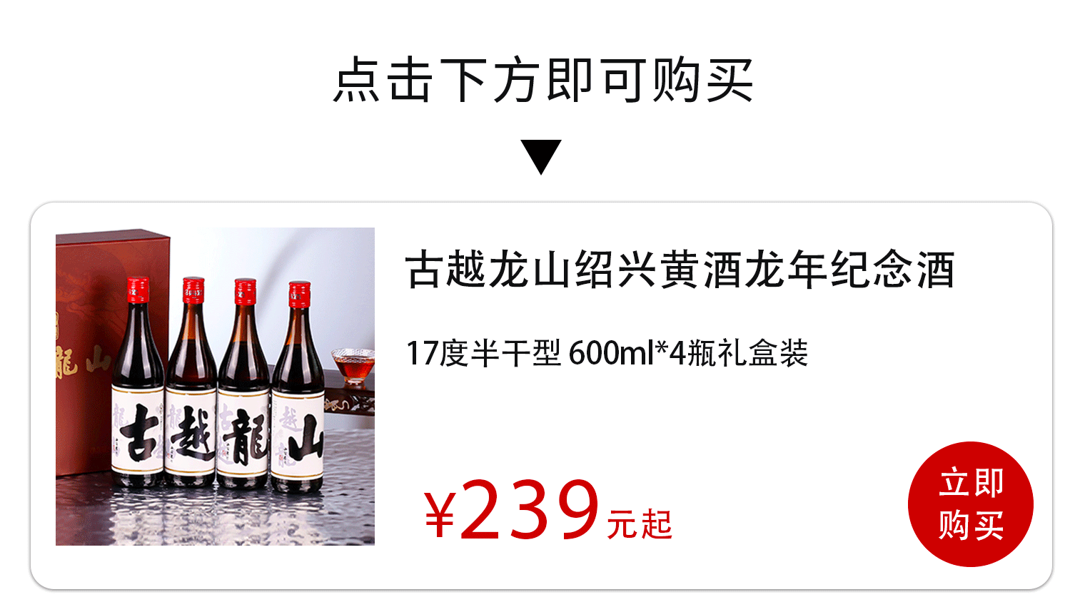 1、古越龙山官方旗舰店有售,17度半干型黄酒,微醺刚刚好。