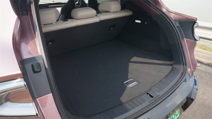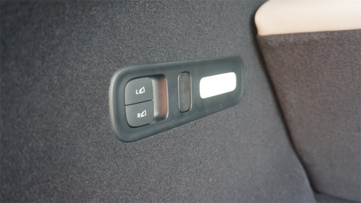 得益于猎装风格的大溜背造型,尾厢容积进一步提升到了678L,而且地台下方也隐藏了储物格,不过深度比较浅,适合放一些诸如野餐垫这样比较扁平的东西。尾厢侧壁上同样带有调节后排靠背的电动开关。门槛相比SU7有所降低,开口也更大更方便。不过尾厢进深偏长,塞到最里面的东西不容易够得着。