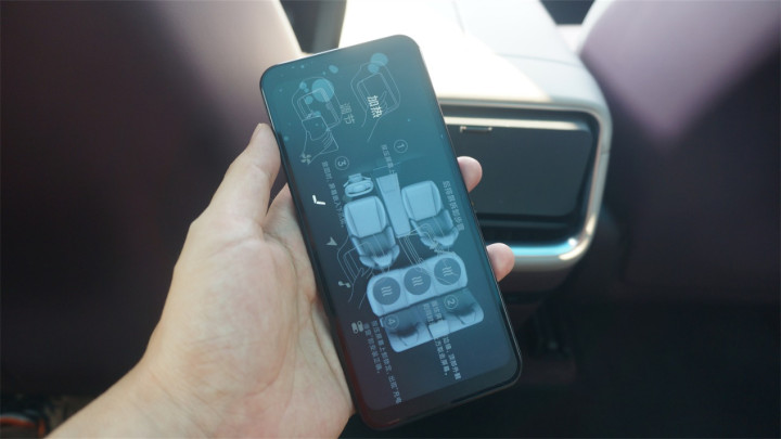它的确长得像个手机,可惜的是也没办法真当成手机用,好在功能还是很丰富的,座椅的通风/加热/调节、导航、音频等等都有。拿在手上用的确很方便,但我觉得语音控制不是更方便吗?而且取放的过程也需要猫着腰了,所以这个设计似乎有点鸡肋。