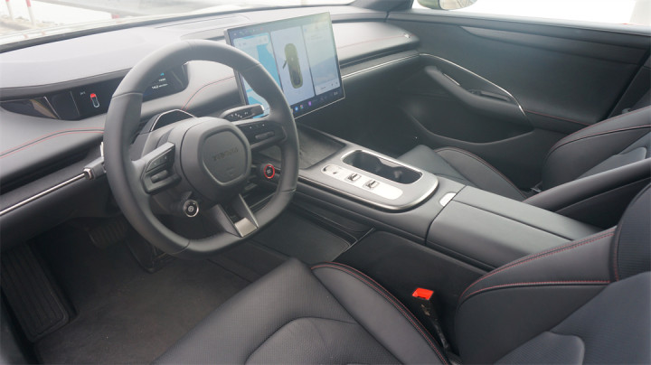 显然全动力输出被限制在了运动+、弹射模式等更激进的调校状态。实际上,舒适模式的马力只有大约400匹左右,新手模式下动力更是会减半。原地起步时有比较明显的限扭动作,但是加速的过程很线性,响应迅速,而且推背感源源不绝,像是大马力燃油车,所以对于日常的动力表现并不用太担心。