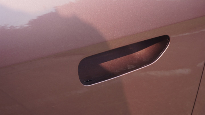 SU7上广受好评的传统门把手,到了YU7身上还是被改掉了,换成了电动的隐藏式。不过打开的设计有别于传统的弹出式,门把手的盖板是往里缩的,配合电吸门,拉开车门时的操作感会比传统的半隐藏式机械把手更友好。而且这种设计据说在冬季能够克服外围冻冰的影响,不怕门把手被冻住。