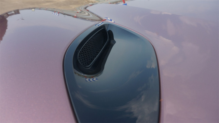 整个头灯被分为上下两部分,下半部分才是真正的前照灯组,而上半部分则是LED日行灯,采用了完全镂空的造型,立体感一下强化了很多。而前机盖上还带有一对朝向后方的通风道,结合对前机舱的观察,气流可能是从灯组上沿流入,在前机盖下方流通后,从机盖顶部流出。有兴趣、有条件的朋友们可以研究下。