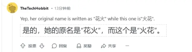 说起来,因为崩铁的角色而让老外去学习并理解中文,这样的事件发生过许多次了,就拿前不久崩铁发布的火花来说,这个角色是花火的sp形态,她的英文版名字是花火英文的谐音,老外觉得这种取名方式很好玩,还特意去查看她的中文版名字,得知就是名字倒过来后,还向其他人科普,感觉玩了崩铁后,老外都累积一定的中文储备了(bushi)。
