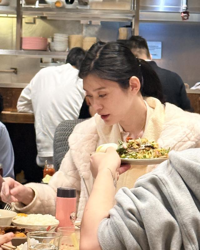 她先是和一众朋友现身平价小餐馆,点的全是家常菜品,没有奢华排场,也没有明星架子,低调又接地气。
