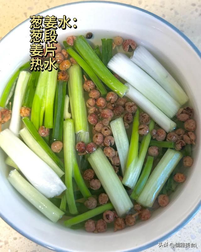 这是馅不干柴、不出水的关键!葱姜切丝用温水泡10分钟,滤出葱姜水,分三次倒入肉馅中,每次倒完都顺着同一个方向快速搅拌,直到水分完全被肉馅吸收,肉馅变得蓬松黏手,再加下一次水。